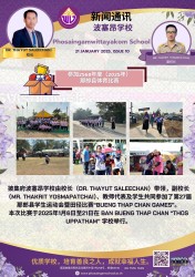 披集府波塞昂学校由校长(Dr. Thayut Saleechan)带领,副校长(Mr. Thakrit Yosmapatchai)、教师代表及学生共同参加了第27届那郎县学生运动会暨田径比赛“Bueng Thap Chan Games”。 本次比赛于2025年1月6日至21日在 Ban Bueng Thap Chan “Thos Uppatham” 学校举行。
