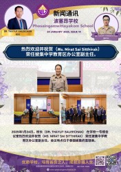 2025年1月24日,校长(Dr. Thayut Saleechan) 在学校一号楼会议室热烈欢迎并祝贺(Ms. Nirat Sai Sitthirak) 荣任披集中学教育区办公室副主任。会议地点位于泰国披集府直辖县。