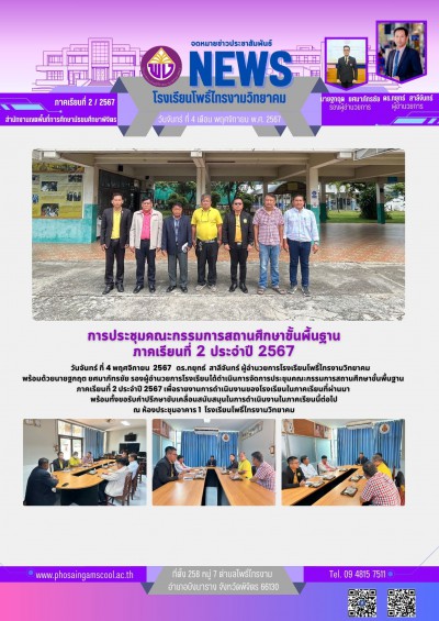 วันจันทร์ ที่ 4 พฤศจิกายน 2567 ดร.ทยุทธ์ สาลีจันทร์ ผู้อำนวยการโรงเรียนโพธิ์ไทรงามวิทยาคม พร้อมด้วยนายฐกฤต ยศมาภัทรชัย รองผู้อำนวยการโรงเรียนได้ดำเนินการจัดการประชุมคณะกรรมการสถานศึกษาขั้นพื้นฐาน ภาคเรียนที่ 2 ประจำปี 2567 เพื่อรายงานการดำเนินงานของโรงเรียนในภาคเรียนที่ผ่านมา พร้อมทั้งขอรับคำปรึกษาขับเคลื่อนสนับสนุนในการดำเนินงานในภาคเรียนนี้ต่อไป ณ ห้องประชุมอาคาร 1 โรงเรียนโพธิ์ไทรงามวิทยาคม