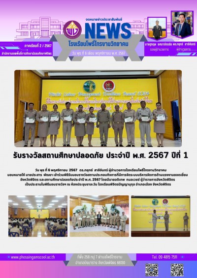 วัน พุธ ที่ 6 พฤศจิกายน 2567 ดร.ทยุทธ์ สาลีจันทร์ ผู้อำนวยการโรงเรียนโพธิ์ไทรงามวิทยาคม มอบหมายให้ นายประสาร พัฒยา เข้าร่วมพิธีรับมอบรางวัลสถานประกอบกิจการที่มีการจัดระบบบริหารจัดการด้านแรงงานยอดเยี่ยม จังหวัดพิจิตร และสถานศึกษาปลอดภัยประจำปี พ.ศ. 2567 โดยมีนายอดิเทพ กมลเวชช์ ผู้ว่าราชการจังหวัดพิจิตร เป็นประธานในพิธีมอบรางวัลฯ ณ ห้องประชุมชาละวัน โรงเรียนพิจิตรปัญญานุกุล อำเภอเมือง จังหวัดพิจิตร