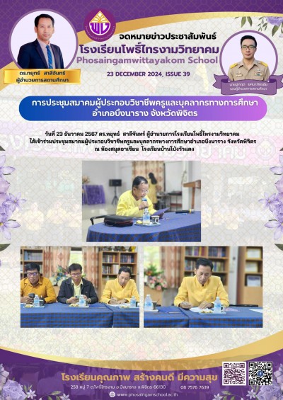 วันที่ 23 ธันวาคม 2567 ดร.ทยุทธ์ สาลีจันทร์ ผู้อำนวยการโรงเรียนโพธิ์ไทรงามวิทยาคม ได้เข้าร่วมประชุมสมาคมผู้ประกอบวิชาชีพครูและบุคลากรทางการศึกษาอำเภอบึงนาราง จังหวัดพิจิตร ณ ห้องสมุดอาเซียน โรงเรียนบ้านโป่งวัวแดง