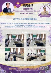 2025年3月17日,Dr. Tayut SaleeCHan 校长与 Mr. Thakrit Yosamapatchai 副校长带领高中生参加公共卫生职业体验实习。 实习时间为2025年3月17日至21日,地点为 Bueng Narang Hospital。